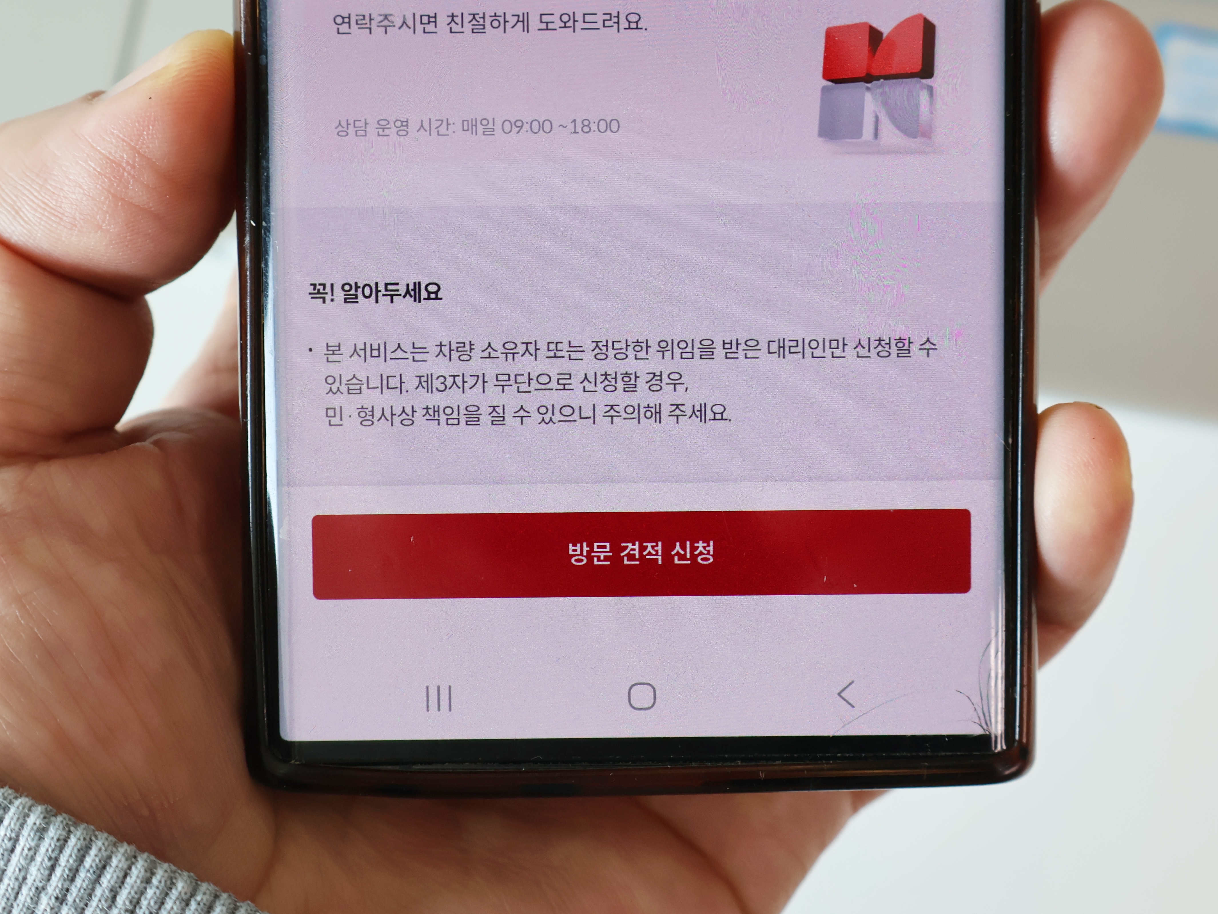 이때 방문 견적도 무료라서 금액 확인만 하고 파는 것을 바로 팔지 않고 보류해도 부담이 없습니다. 이 부분이 내차시세 확인 후기에서 가장 좋았던 부분입니다.