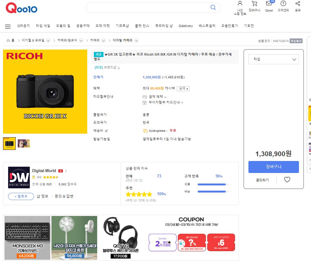 어떻게 보면 휴대성과 성능을 갖추고 있기에 리코카메라 GR시리즈 경우는 꾸준하게 선택받고 있는데, 일상 스냅 촬영을 목적으로 카메라 구입을 앞두고 있거나 가볍게 가지고 다니면서 촬영한 똑딱이 카메라 제품이 필요하다면 살펴보시기 바랍니다.