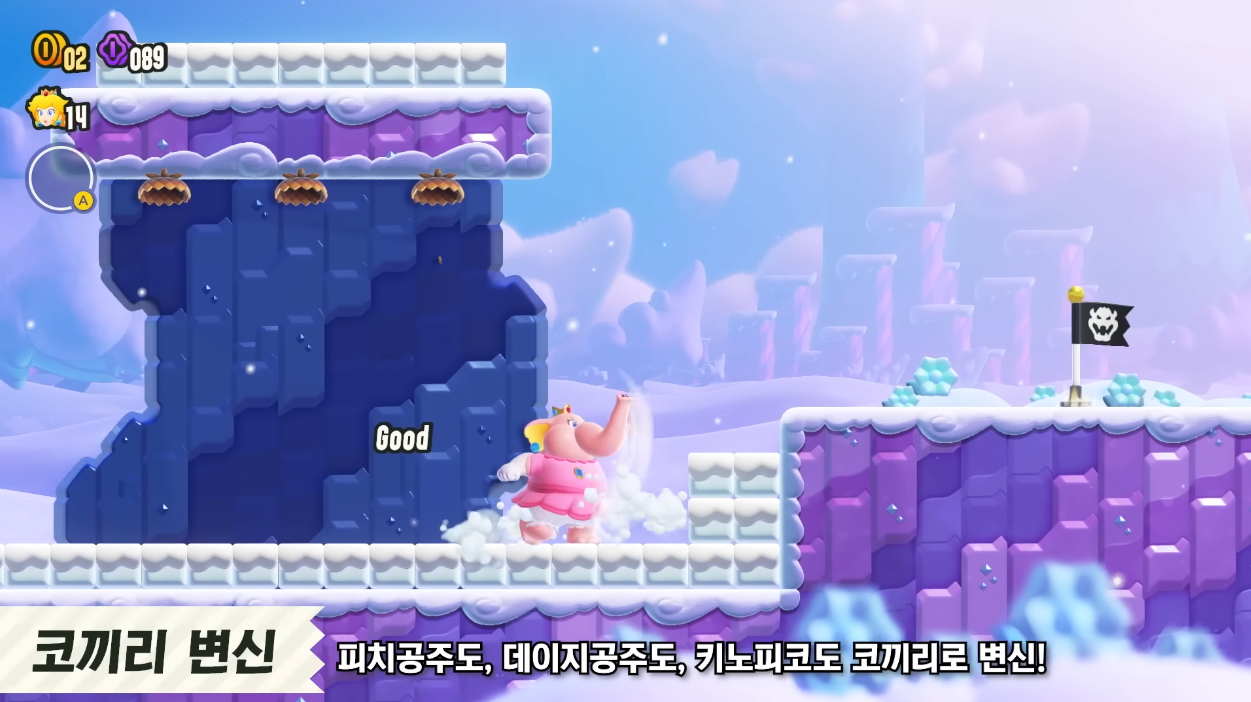 그래서 파워업 코끼리마리오는 큰 몸집과 긴 코를 활용한 액션코스 전체를 달리며 그 외에도 거품마리오나 드릴마리오가 새롭게 등장하고 마리오들은 특별한 능력도 선보인다고 하니 기대하는 분들이 많습니다.