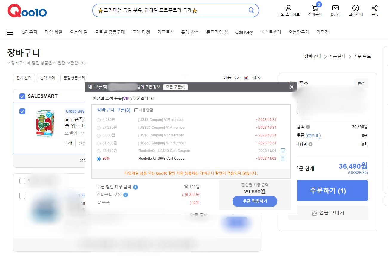 그러니 반드시 구입할때, 쿠폰 적용 통해서 사는게 좋아요. 룰렛쿠폰(매일 출석하면 자주줘요) 경우 자주 나와요. 30% 최대 할인 받으면 6800원 해서 29690원 구입 가능하니 완전 착함!!