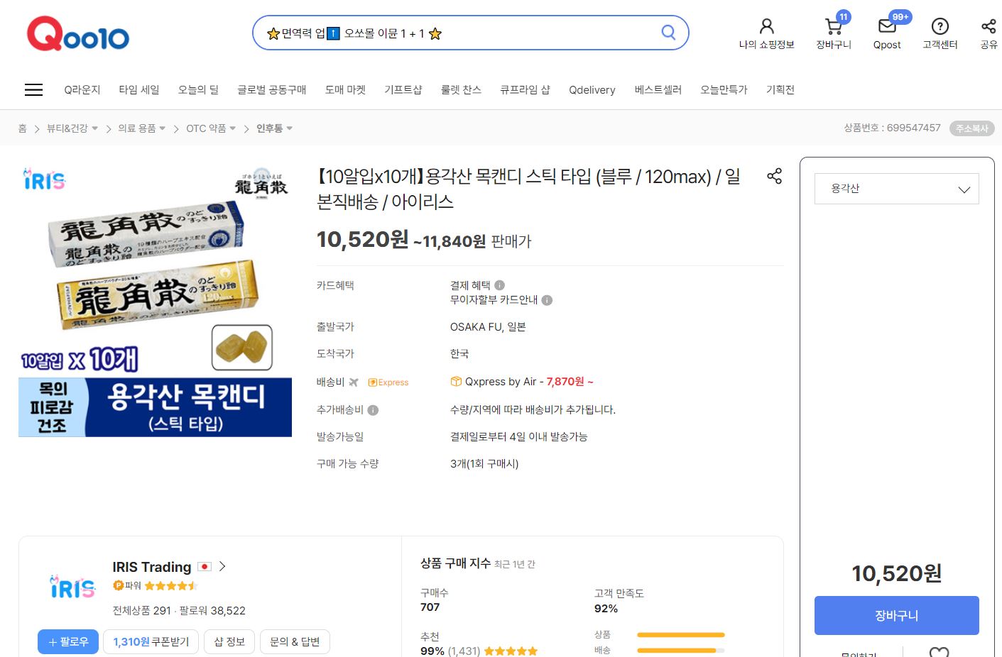 입안이 싸하지 않게 개운한 효능도 있으면서도 허브파우더의 성분은 원조격 제품인 만큼 기침을 많이 한다면 살펴보세요. 일본 여행가서 사오기도 하지만, 요즘은 인터넷 쇼핑이 원낙 잘되어 있어서 이용하기 편해요. 배송비 절약 위해서 같은 가게에서 다른 제품이랑 같이 구입하면 되요.