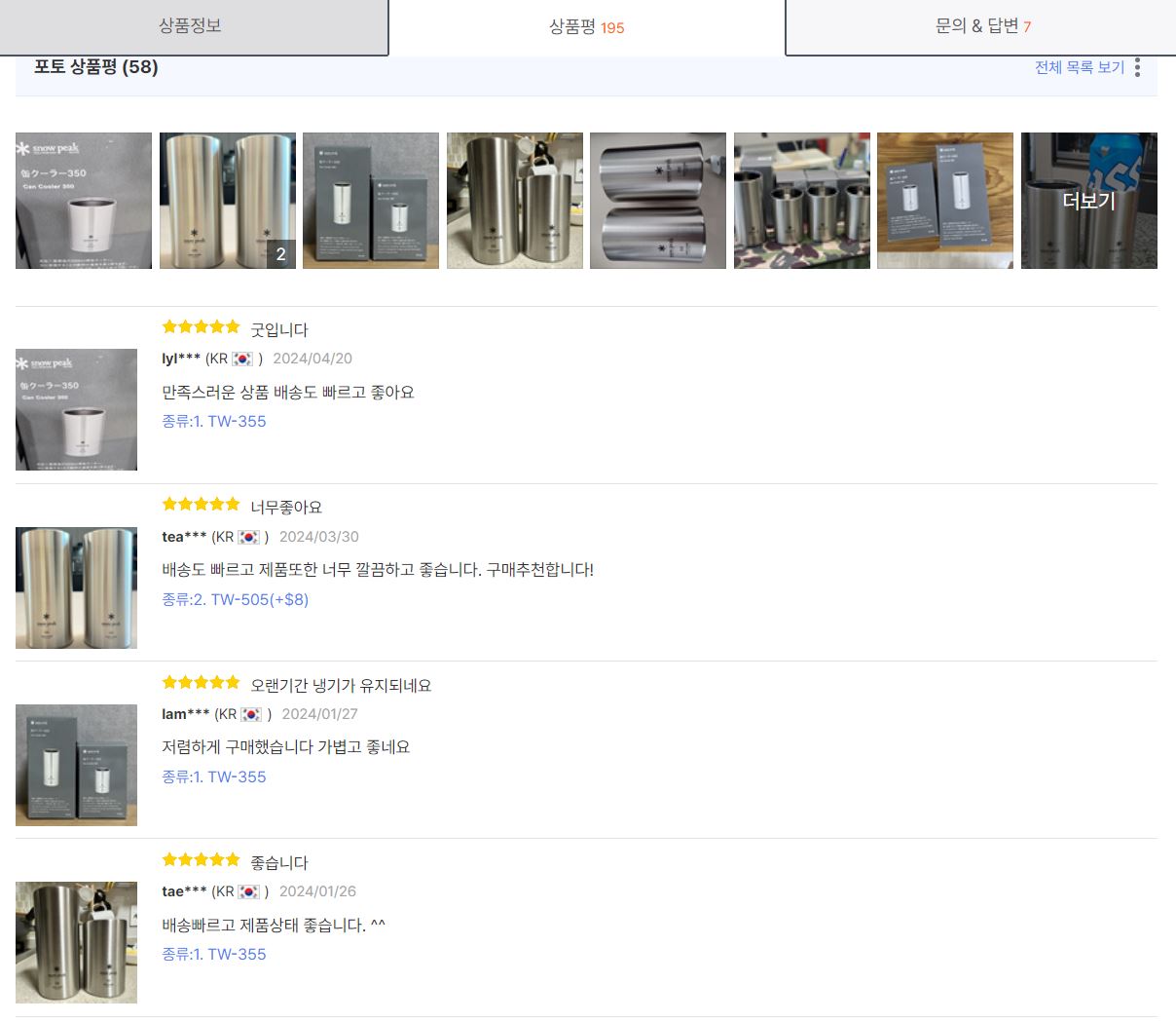 [41,360원](▼7%)TW-355 / TW-505 스노우피크 Snow peak 맥주 캔 쿨러 / 캠핑 / 캔쿨러 / 보냉컵 / 보온컵 tw505