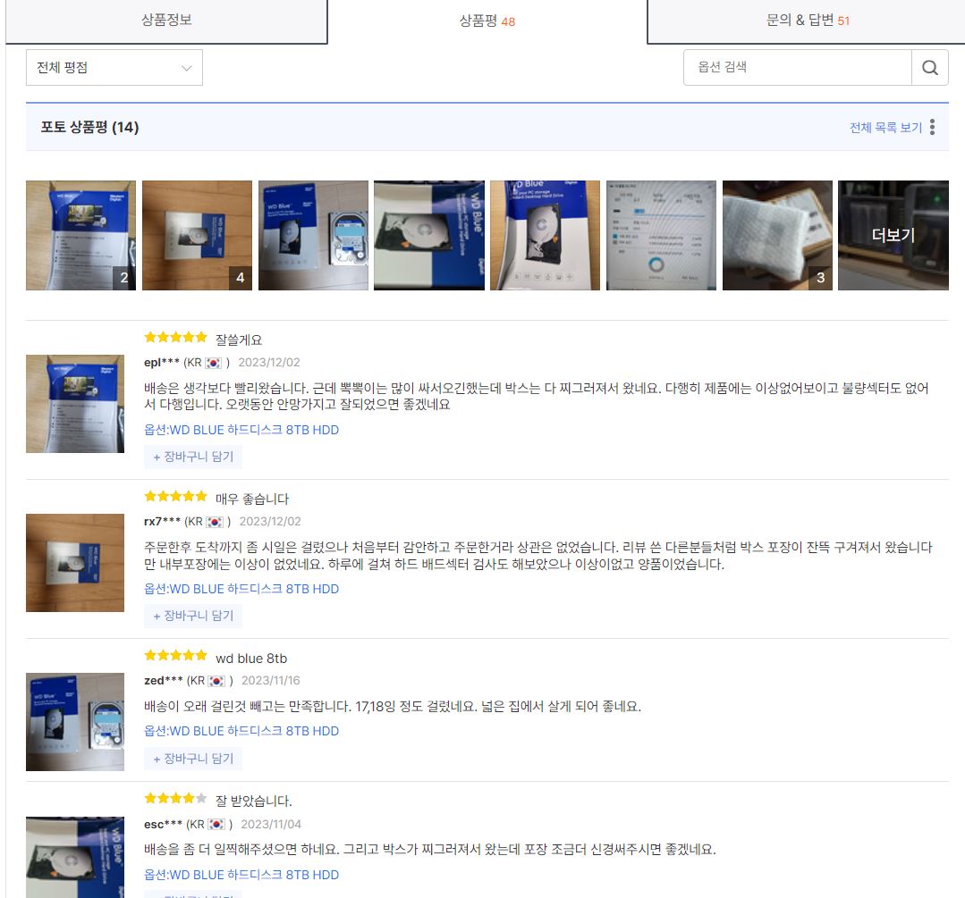 하지만, 가성비로 볼때 단순 백업용 하드디스크 추천 제품을 찾는 분들에게 웨스턴 디지털 WD BLUE 8TB HDD WD80EAAZ 제품을 추천합니다.