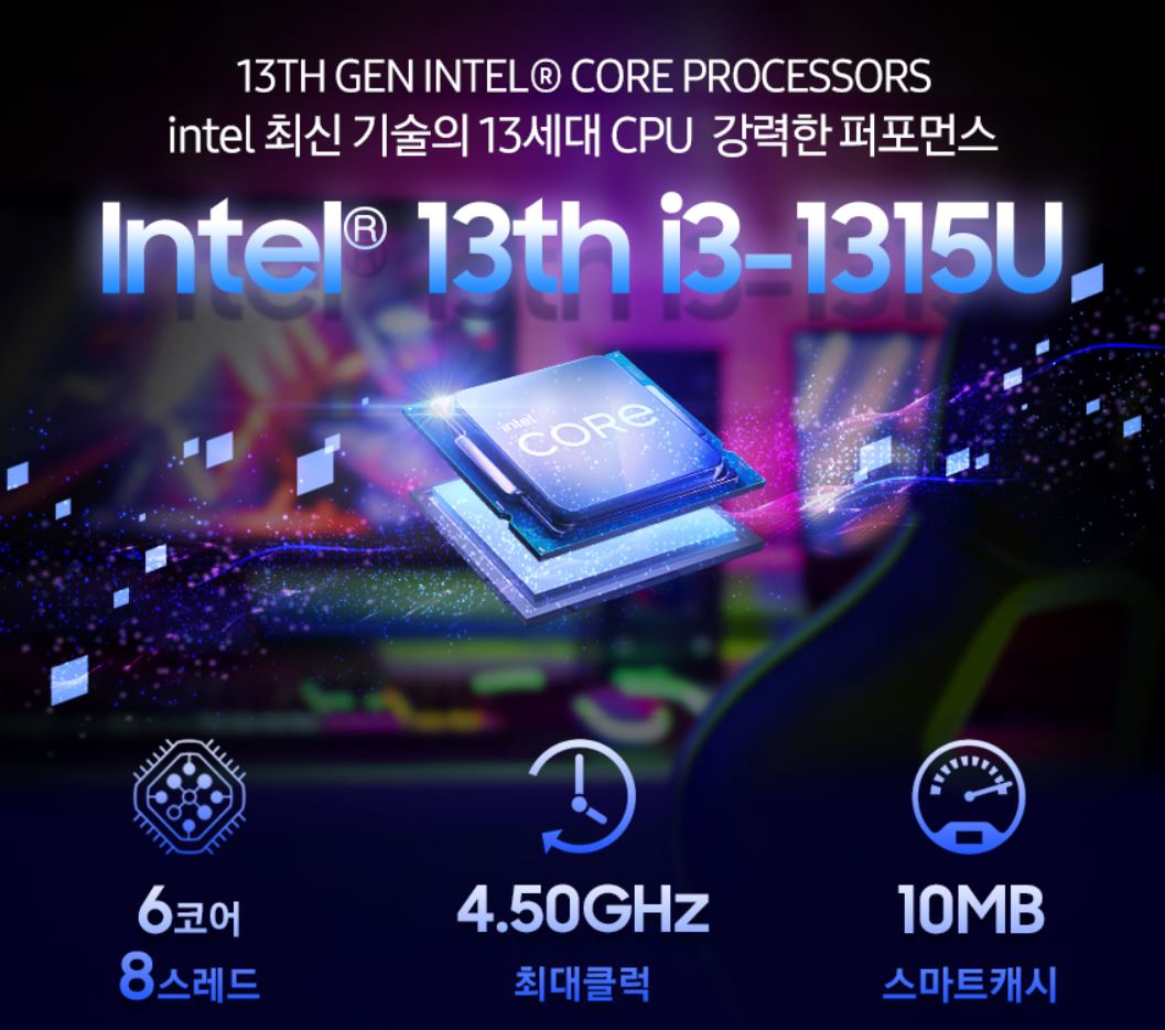 13세대 Intel Core i3-1315U 프로세서 1.2GHz up to 4.50GHz, 10MB L3 Cache를 탑재하고 있는데, 최신 i3 프로세서는 스펙이 향상되어 어지간한 게임까지 무리 없이 즐길 수 있을 수준을 가지고 있어서 여러 가지 작업은 물론이고 여가 시간에 게임 등을 즐기기에 좋으니 활용하기에 좋습니다.