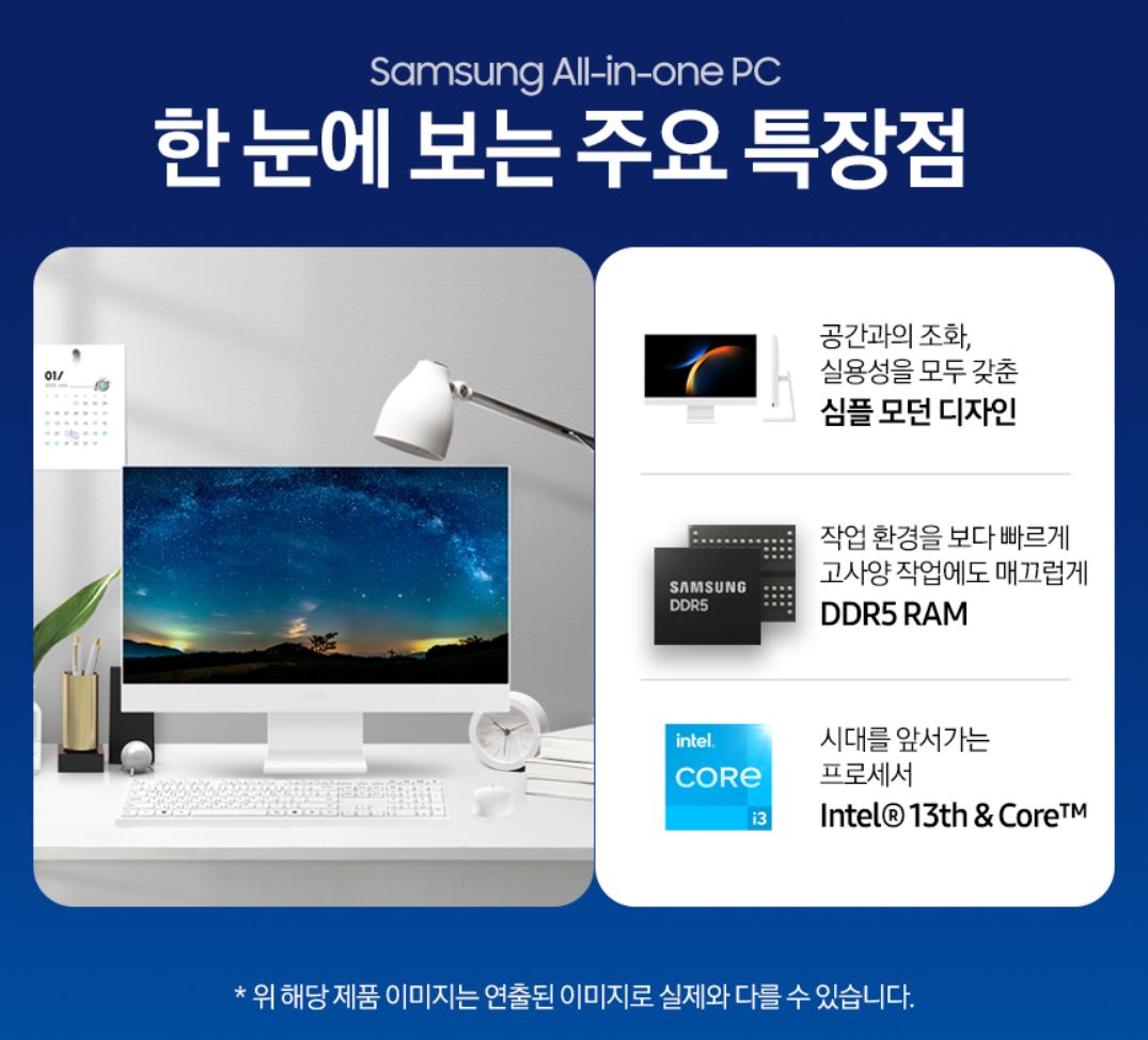 그런 점에서 보면 삼성 올인원 컴퓨터 제품은 화이트 컬러의 색상으로 심플하고 세련된 외관이라서 주변 인테리어와도 잘 어울리니 어디에 두고 사용해도 좋아서 마음에 듭니다.
