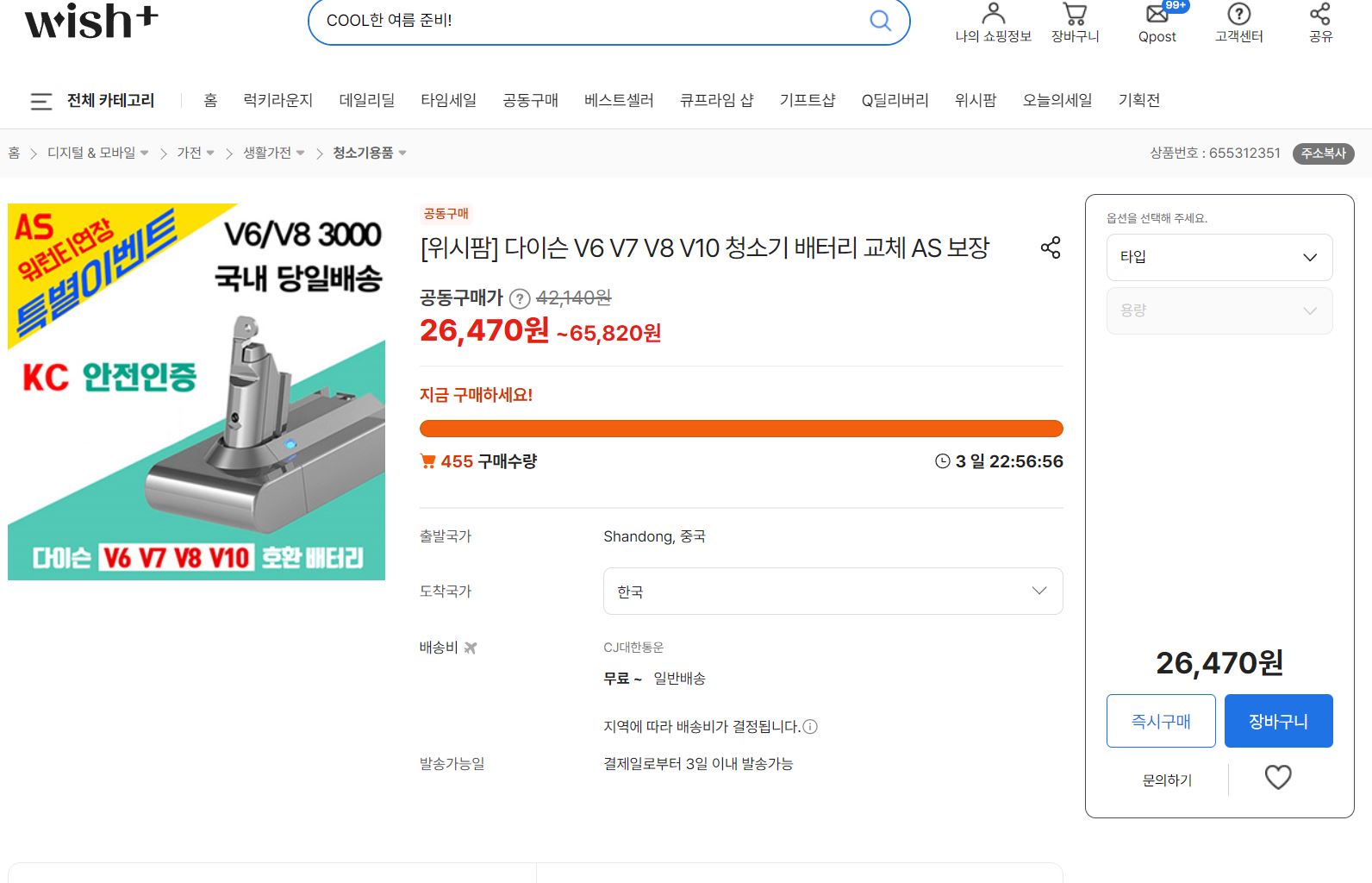 [26,470원](▼38%)[위시팜] 다이슨 V6 V7 V8 V10 청소기 배터리 교체 AS 보장
