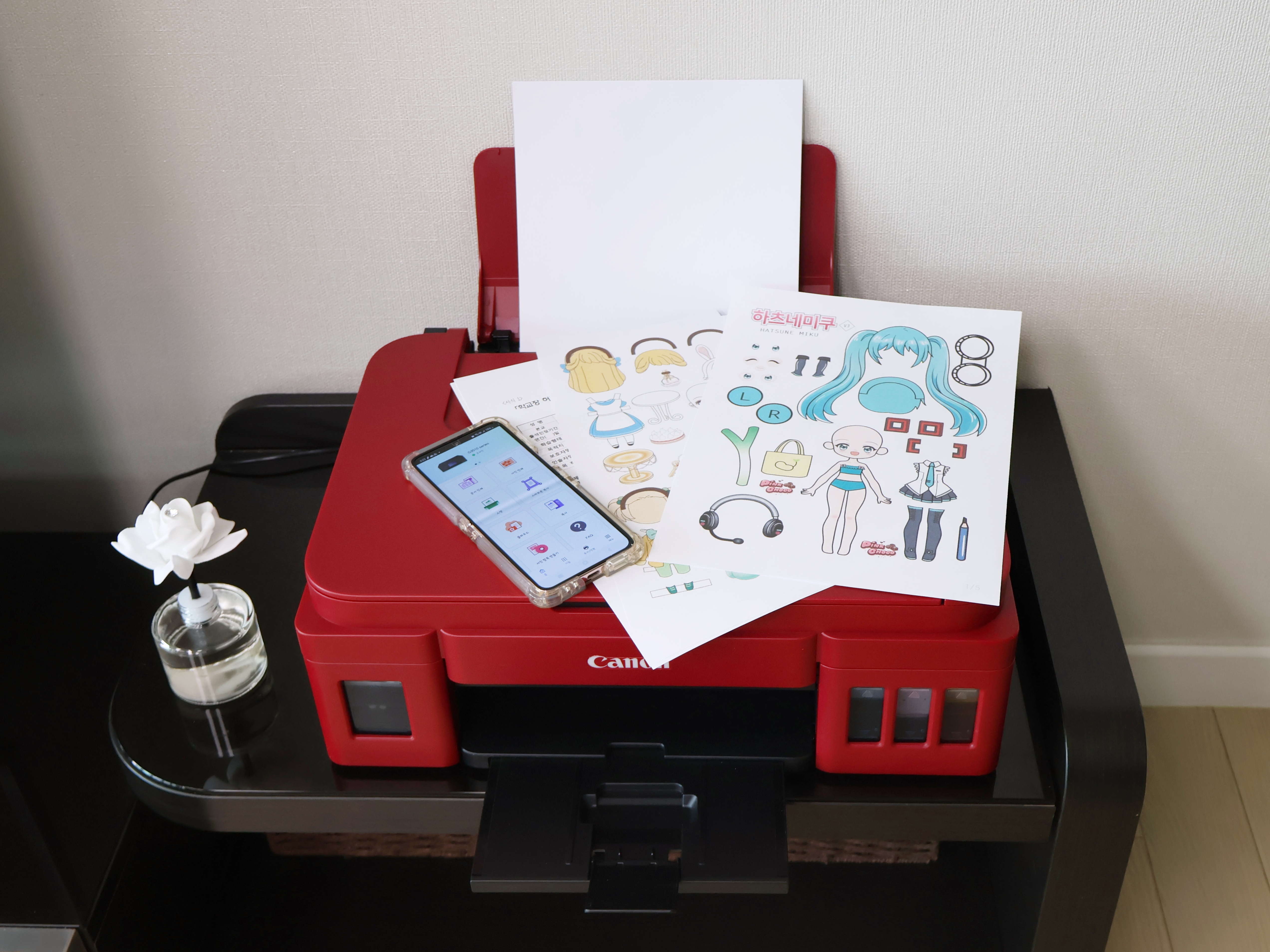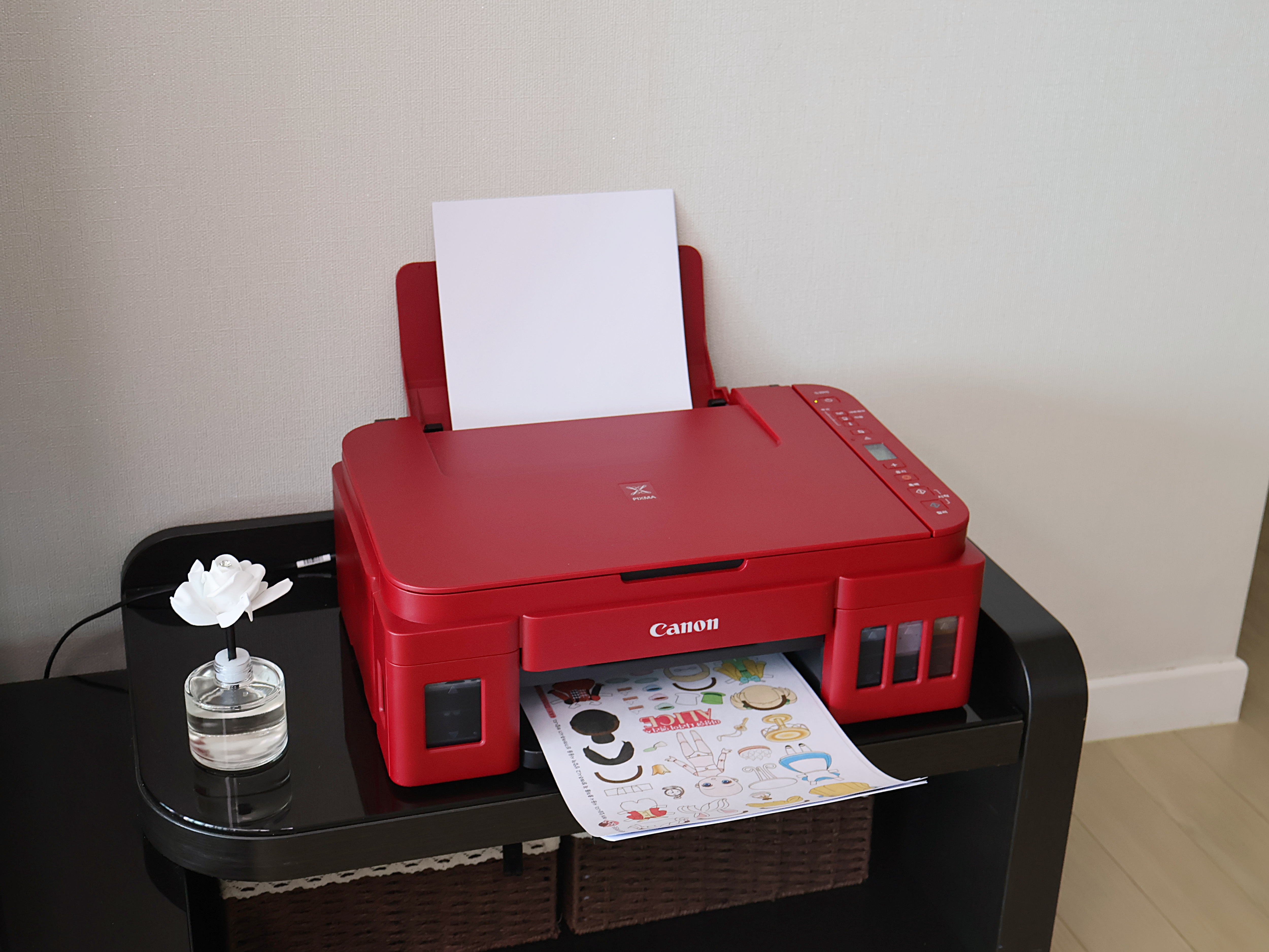 프린터 사용 시 속도도 체크하게 되는데, 흑백 8.8ipm, 컬러 5.0ipm으로 전혀 불편하지 않아요. 그래서 집에서 흑백과 컬러를 프린트할 때 1분 동안 8.8매, 5.0매를 뽑을 수 있습니다.
