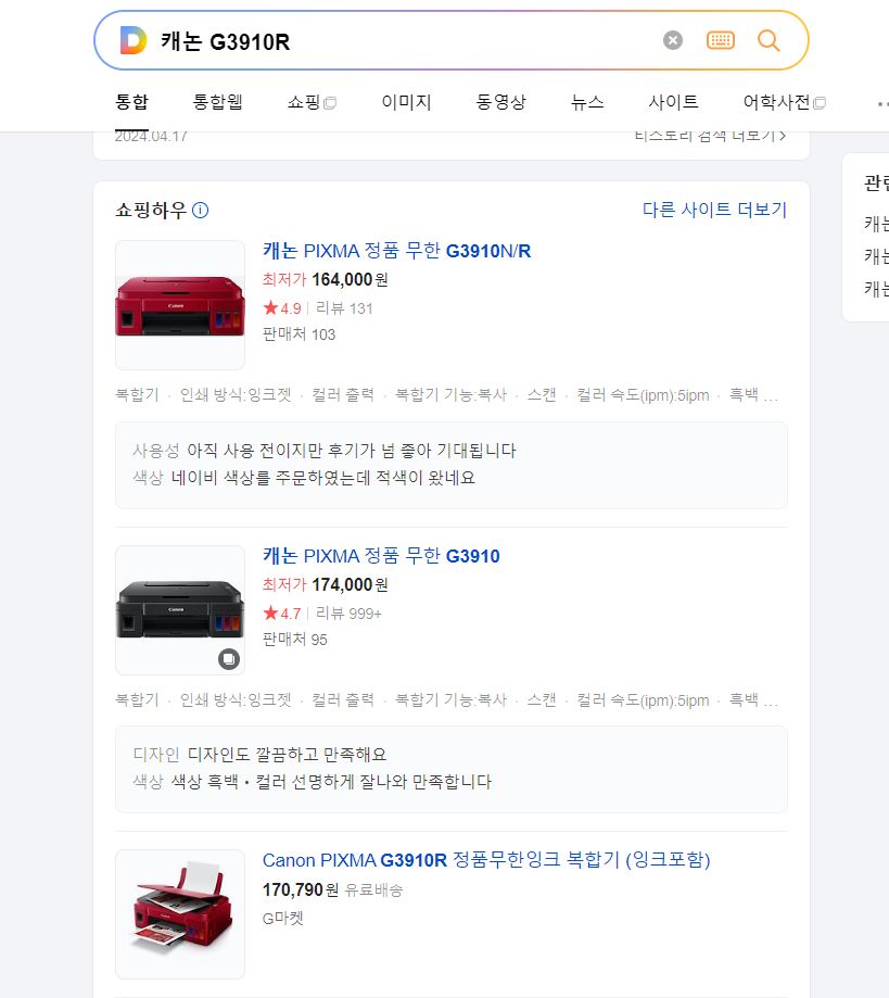 우선 다음 쇼핑하우 최저가를 보면 164,000원(24년 8월 8일 기준)입니다. 프린터기 제품이 보통 10만원 이하이니